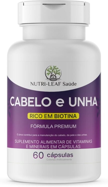 Cabelo e Unha Vitamina para Crescimento Capilar Unhas Fortes e Pele Saudável com Biotina Zinco e 16 Vitaminas Essenciais 60 Cápsulas da NUTRI-LEAF Saúde